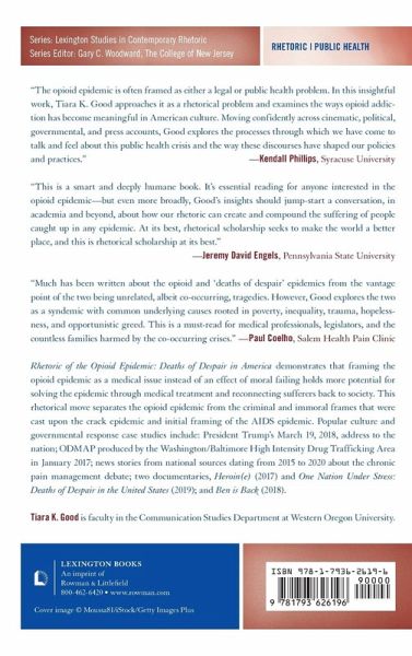 Rhetoric of the Opioid Epidemic argues that the opioid epidemic is a public health issue. By analyzing case studies from popular culture and governmental responses, Tiara Good demonstrates that the power of naming it an epidemic, rather than a drug or crime issue, reduces counterproductive stigma and assists in reshaping public perspectives.