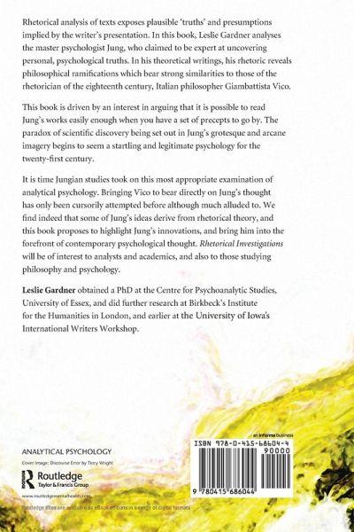 Rhetorical analysis of texts exposes plausible 'truths' and presumptions implied by the writer's presentation. In this volume, Leslie Gardner analyses the master psychologist Jung, who claimed to be expert at uncovering personal, psychological truths. In his theoretical writings, his rhetoric reveals philosophical ramifications which bear strong similarities to those of the rhetorician of the 18th century, Italian philosopher Giambattista Vico. This book is driven by an interest in arguing that it is possible to read Jung's works easily enough when you have a set of precepts to go by. The paradox of scientific discovery being set out in Jung's grotesque and arcane imagery begins to seem a startling and legitimate psychology for the 21st century. It is time Jungian studies took on this most appropriate examination of analytical psychology. Bringing Vico to bear directly on Jung's thought has only been cursorily attempted before although much alluded to. We find indeed that some of Jung's ideas derive directly from rhetorical theory, and this volume proposes to highlight Jung's innovations, and bring him into forefront of contemporary psychological thought. Rhetorical Investigations will be of interest to analysts and academics, and also to those studying philosophy and psychology.