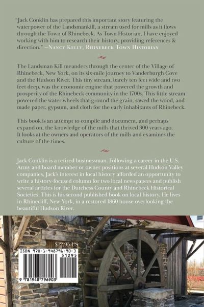 The Landsman Kill meanders through the center of the Village of Rhinebeck, New York, on its six-mile journey to Vanderburgh Cove and the Hudson River. This tiny stream, barely ten feet wide and two feet deep, was the economic engine that powered the growth and prosperity of the Rhinebeck community in the 1700s. This little stream powered the water wheels that ground the grain, sawed the wood, and made paper, gypsum, and cloth for the early inhabitants of Rhinebeck. This book is an attempt to compile and document, and perhaps expand on, the knowledge of the mills that thrived 300 years ago. It looks at the owners and operators of the mills and examines the culture of the times.
