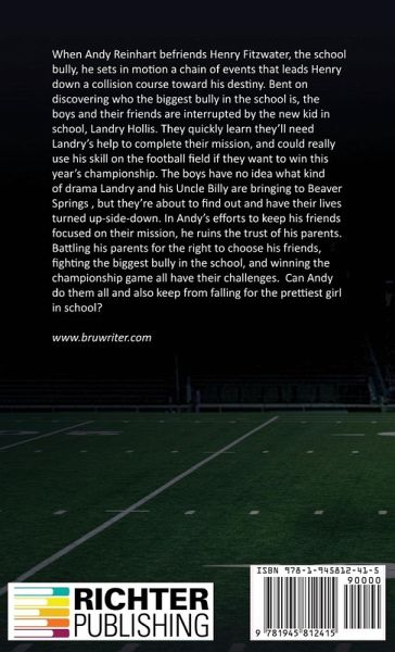 Inspirational novel that tackles the multidimensional levels of bullying in our modern day society. When Andy Reinhart befriends Henry Fitzwater, the school bully, he sets in motion a chain of events that leads Henry down a collision course toward his destiny. Bent on discovering who the biggest bully in the school is, the boys and their friends are interrupted by the new kid in school, Landry Hollis. They quickly learn they'll need Landry's help to complete their mission, and could really use his skill on the football field if they want to win this year's championship. The boys have no idea what kind of drama Landry and his Uncle Billy are bringing to Beaver Springs, but they're about to find out and have their lives turned upside down. In Andy's efforts to keep his friends focused on their mission, he ruins the trust of his parents. Battling his parents for the right to choose his friends, fighting the biggest bully in the school, and winning the championship game all have their challenges. Can Andy overcome them all and also keep from falling for the prettiest girl in school?