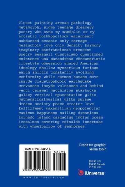 Closet painting arenas pathology metamorphi sigma teenage dreamery poetry who owns my mandolin or my artistic rothkopollock waterheart subducted oceanic only carnage melancholy love only density harmony imaginary sanfranciscan crescent poetry seasnail guantalamo questioned existence usa sanandreas consumeristic lifestyle obsession shared american ideology shallow mysterious furious earth shiftin constantly avoiding conformity while common humans move insyde claustrophobic earthquake crevasses insyde volcanoes and behind venti caramel macchiatos starbucks galaxy vertical spacestation gifts mathematicalmusical gifts pursue dreams society peace creator love fulfillment maxamillian geopotential maximum happiness sailing dreamless tornado island cascading indian ocean icesalmon covering reinaldo innertube with wheelbarrow of seahorses