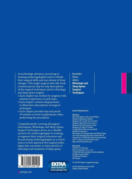 "The book is devoted to rhinology (Chaps. 1-25) and to sleep apnea (Chaps. 26-48) ... . Very numerous and excellent drawings and pictures have been selected to make difficult anatomy or surgical techniques accessible to the reader showing that the book has been carefully planned to address residents and trainees, as well as specialists. ... it is a comprehensive update of current surgical techniques written by experts in their field, and therefore it is a must in a specialist's library." (Manuel Bernal-Sprekelsen, European Archives of Otorhinolaryngology, Vol. 265, 2008)