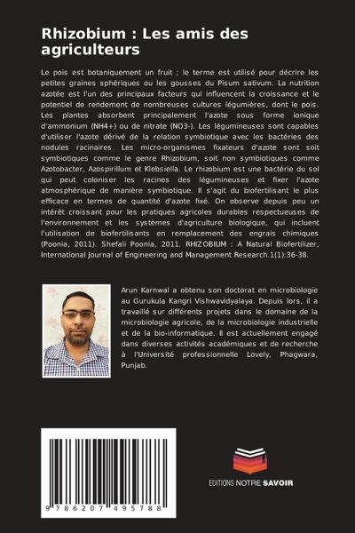 Le pois est botaniquement un fruit ; le terme est utilisé pour décrire les petites graines sphériques ou les gousses du Pisum sativum. La nutrition azotée est l'un des principaux facteurs qui influencent la croissance et le potentiel de rendement de nombreuses cultures légumières, dont le pois. Les plantes absorbent principalement l'azote sous forme ionique d'ammonium (NH4+) ou de nitrate (NO3-). Les légumineuses sont capables d'utiliser l'azote dérivé de la relation symbiotique avec les bactéries des nodules racinaires. Les micro-organismes fixateurs d'azote sont soit symbiotiques comme le genre Rhizobium, soit non symbiotiques comme Azotobacter, Azospirillum et Klebsiella. Le rhizobium est une bactérie du sol qui peut coloniser les racines des légumineuses et fixer l'azote atmosphérique de manière symbiotique. Il s'agit du biofertilisant le plus efficace en termes de quantité d'azote fixé. On observe depuis peu un intérêt croissant pour les pratiques agricoles durables respectueuses de l'environnement et les systèmes d'agriculture biologique, qui incluent l'utilisation de biofertilisants en remplacement des engrais chimiques (Poonia, 2011). Shefali Poonia, 2011. RHIZOBIUM : A Natural Biofertilizer, International Journal of Engineering and Management Research.1(1):36-38.