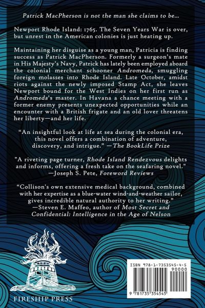 Newport Rhode Island: 1765 The Seven Years War is over but unrest in the American colonies is just heating up. Maintaining her disguise as a young man, Patricia is finding success as Patrick MacPherson. Formerly a surgeon’s mate in His Majesty’s Navy, Patrick has lately been employed aboard the colonial merchant schooner Andromeda, smuggling foreign molasses into Rhode Island. Late October, amidst riots against the newly imposed Stamp Act, she leaves Newport bound for the West Indies on her first run as Andromeda’s master. In Havana, a chance meeting with a former enemy presents unexpected opportunities, while an encounter with a British frigate and an old lover threatens her liberty — and her life.
