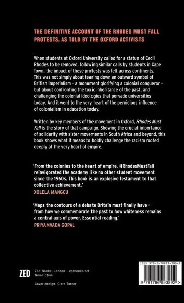 When students at Oxford University called for a statue of Cecil Rhodes to be removed, following similar calls by students in Cape Town, the significance of these protests was felt across continents. This was not simply about tearing down an outward symbol of British imperialism - a monument glorifying a colonial conqueror - but about confronting the toxic inheritance of the past, and challenging the continued underrepresentation of people of colour at universities. And it went to the very heart of the pernicious influence of colonialism in education today. Written by key members of the movement in Oxford, Rhodes Must Fall is the story of that campaign. Showing the crucial importance of both intersectionality and solidarity with sister movements in South Africa and beyond, this book shows what it means to boldly challenge the racism rooted deeply at the very heart of empire.