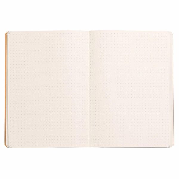 Rhodiarama flexibles Notizbuch A5 80 Blatt Dot-Lineatur, Papier elfenbein 90g, mit Gummizugverschluss Mit orangefarbenem Lesezeichen, dehnbarer Innentasche in orange. Samtweiches, elfenbeinfarbenes 90g Clairefontaine-Velinpapier, einzigartig weich, blickdicht und strapazierfähig. Papier PEFC-zertifiziert. 0