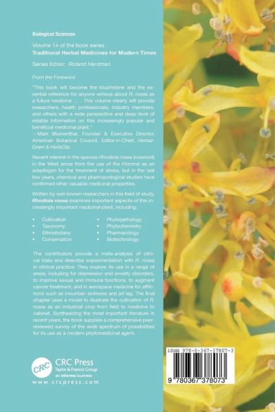 Taxonomy of Rhodiola rosea L., with Special Attention to Molecular Analyses of Nunavik (Québec) Populations. Ethnobotany and Conservation of Rhodiola Species. Phytochemistry of Rhodiola rosea. Cultivation of Rhodiola rosea in Europe. Rhodiola rosea Cultivation in Canada and Alaska. Diseases of Wild and Cultivated Rhodiola rosea. Biotechnology of Rhodiola rosea. Pharmacological Activities of Rhodiola rosea. Evidence-Based Efficacy and Effectiveness of Rhodiola SHR-5 Extract in Treating Stress- and Age-Associated Disorders. Rhodiola rosea in Psychiatric and Medical Practice. Toxicology and Safety of Rhodiola rosea. Commercialization of Rhodiola rosea. Index.