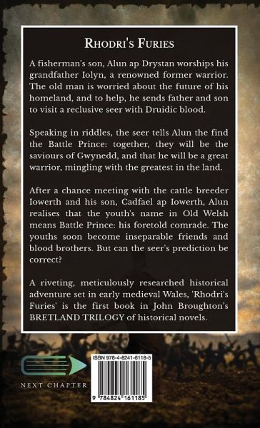 A fisherman's son, Alun ap Drystan worships his grandfather Iolyn, a renowned former warrior. The old man is worried about the future of his homeland, and to help, he sends father and son to visit a reclusive seer with Druidic blood. Speaking in riddles, the seer tells Alun the find the Battle Prince: together, they will be the saviours of Gwynedd, and that he will be a great warrior, mingling with the greatest in the land. After a chance meeting with the cattle breeder Iowerth and his son, Cadfael ap Iowerth, Alun realises that the youth's name in Old Welsh means Battle Prince: his foretold comrade. The youths soon become inseparable friends and blood brothers. But can the seer's prediction be correct? A riveting, meticulously researched historical adventure set in early medieval Wales, 'Rhodri's Furies' is the first book in John Broughton's BRETLAND TRILOGY of historical novels.