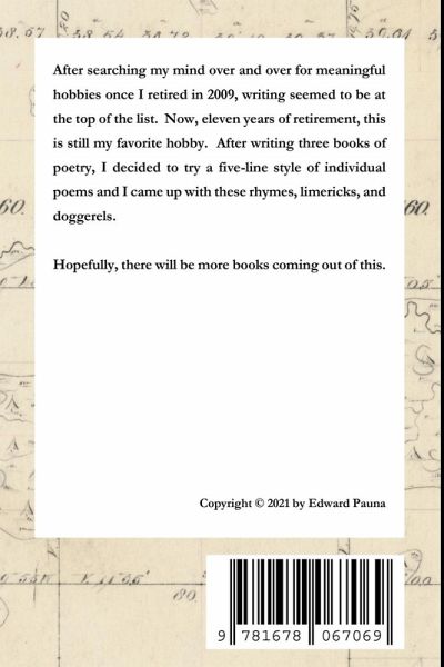 This is one book in a set of 4 books of poetry and one book of rhymes, limericks, and doggerels. The author draws from nature, his experiences, imagination, and divine inspiration. The content ranges from light and playful, to vivid, to poignant, to spiritual. There are surely works that will resonate with every reader. Books by Edward Pauna An Old Rookie's Dream Volume I An Old Rookie's Dream Volume II An Old Rookie's Dream Volume III Nature's Realm Rhymes, Limericks, and Doggerels