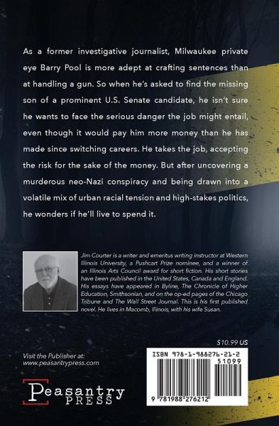 As a former investigative journalist, Milwaukee private eye Barry Pool is more adept at crafting sentences than at handling a gun. So when he's asked to find the missing son of a prominent U.S. Senate candidate, he isn't sure he wants to face the serious danger the job might entail, even though it would pay him more money than he has made since switching careers. He takes the job, accepting the risk for the sake of the money. But after uncovering a murderous neo-Nazi conspiracy and being drawn into a volatile mix of urban racial tension and high-stakes politics, he wonders if he'll live to spend it.