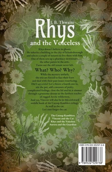 Rhys doesn't believe in ghosts. He inherits a building in the city of Schadesborough and selects a couple of tenants to live there with him. One of them sets up a pharmacy downstairs, the other paints in the attic. Turns out the old tenant never left. What? Who? Why? While the mystery unfurls, the trio are forced to face their fears and deal with their past issues resurfacing. Did I say a trio? Let's throw a fourth one in, stir the pot, add a measure of pesky, complicated feelings, close the lid and let it simmer through a gruesome detour to the farthest reaches of rugged Arctic wilderness. And yes, Vincent will also be in this awkward middle book of the Catnap Ramblers trilogy. As well as the cat. Let's not forget the cat.