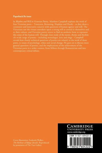 In Rhythm and Will in Victorian Poetry, Matthew Campbell explores the work of four Victorian poets - Tennyson, Browning, Hopkins and Hardy - as they show a consistent and innovative concern with questions of human agency and will. The Victorians saw the virtues attendant upon a strong will as central to themselves and to their culture, and Victorian poetry strove to find an aesthetic form to represent this sense of the human will. Through close study of the metre, rhyme and rhythm of a wide range of poems - including monologue, lyric and elegy - Campbell reveals how closely technical questions of poetics are related, in the work of these poets, to issues of psychology, ethics and social change. He goes on to discuss more general questions of poetics, and the implications of the achievement of the Victorian poets in a wider context, from Milton through Romanticism and into contemporary critical debate.
