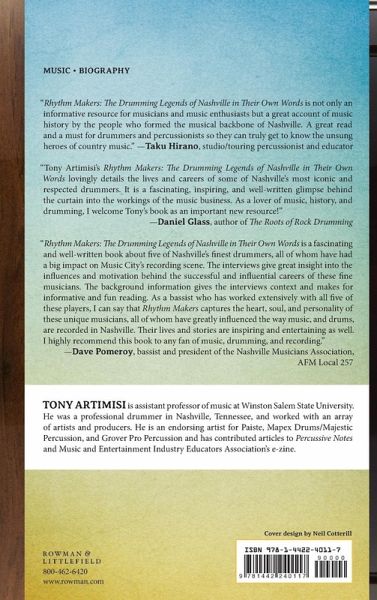 In Rhythm Makers: The Legendary Drummers of Nashville in Their Own Words, Tony Artimisi documents through extensive interviews the work of some of the most influential drum kit players in popular music today, opening a window onto one of the most vibrant music scenes in modern American history. Telling their stories in their own words, each legendary figure walks readers through the realities of how musical opportunities arise in Nashville, how the recording process has changed over time, what it is like to drum behind some of the top artists in American music, and how one makes it as a professional drummer. Artimisi's subjects together have performed on literally thousands of recordings, from master recordings to demos, jingles to sound-alikes. Having played behind nearly everyone who passed through Nashville, from Dolly Parton and Elton John to Glen Campbell and Johnny Mathis, Eddie Bayers Jr. regales readers with stories of the many areas in the industry he worked to build his legendary career. Master drummer Jerry Kroon, whose credits include work with Ricky Skaggs, Willie Nelson, Merle Haggard and numerous others, shares his secret for maintaining good relationships with various personality types in music. Percussionist extraordinaire Tom Roady, who has recorded with Wilson Pickett, The Dixie Chicks, and Kenny Chesney-too name but a few-offers insights into what makes a drummer in his recollection of his career start. One of the most inventive instrumentalists, Kenny Malone, who has worked with Waylon Jennings, Garth Brooks, Johnny Cash and many more, discusses his own unique experiments in drumming technique in order to maintain his creative edge. Finally, Tommy Wells, whose career beginnings in Motown led him to Nashville, where he drummed for Charley Pride, The Statler Brothers, and The Charlie Daniels Band, offers a true insider's perspective offering insights into how jingle and sound-alike sessions operate, which can be a valuable part of the professional sideman's work. This work is the ideal for readers interested in the history of country music and the Nashville recording scene more generally, record and music production, popular music, and drumming as both art and profession.