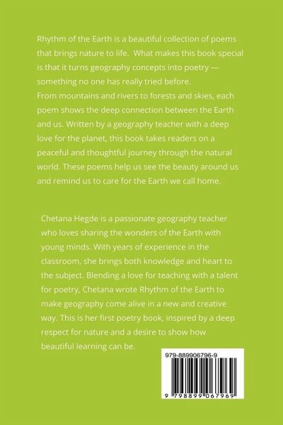 Rhythm of the Earth is a beautiful collection of poems that brings nature to life. What makes this book special is that it turns geography concepts into poetry - something no one has really tried before. From mountains and rivers to forests and skies, each poem shows the deep connection between the Earth and us. Written by a geography teacher with a deep love for the planet, this book takes readers on a peaceful and thoughtful journey through the natural world. From the birth of Earth to the moonlit tides, each piece invites readers to pause, observe, and connect with the natural world in a more meaningful way. Whether you're a nature lover, a student, or simply someone who looks up at the sky in wonder-this book is for you.