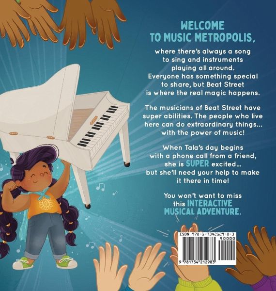 A Super-Powered Adventure That Teaches Kids Rhythm! Welcome to Music Metropolis, a city alive with rhythm, melody, and magical instruments. On Beat Street, music isn't just fun-it gives kids superpowers! When Tala gets a call from a friend, she's SUPER excited-but to make it there in time, she needs your help. Clap, tap, and move along as you join Tala in this interactive musical adventure that turns learning rhythms into play. ¿ Perfect for:Elementary music teachers looking for fun rhythm activities Parents who want to introduce music through play Kids ages 4-8 who love interactive stories What kids will learn:How to recognize and practice quarter notes and eighth notes Listening skills, rhythm patterns, and musical confidence That music is a superpower they can use anywhere! Whether you're teaching in the classroom or reading at home, Rhythm Rescue is a lively, hands-on picture book that gets kids clapping, tapping, and excited about music.
