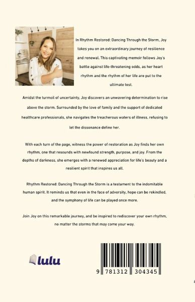 In Rhythm Restored: Dancing Through the Storm, Joy takes you on an extraordinary journey of resilience and renewal. This captivating memoir follows Joy's battle against life-threatening odds, as her heart rhythm and the rhythm of her life are put to the ultimate test. Amidst the turmoil of uncertainty, Joy discovers an unwavering determination to rise above the storm. Surrounded by the love of family and the support of dedicated healthcare professionals, she navigates the treacherous waters of illness, refusing to let the dissonance define her. With each turn of the page, witness the power of restoration as Joy finds her own rhythm, one that resounds with newfound strength, purpose, and joy. From the depths of darkness, she emerges with a renewed appreciation for life's beauty and a resilient spirit that inspires us all. Rhythm Restored: Dancing Through the Storm is a testament to the indomitable human spirit. It reminds us that even in the face of adversity, hope can be rekindled, and the symphony of life can be played once more. Join Joy on this remarkable journey, and be inspired to rediscover your own rhythm, no matter the storms that may come your way.