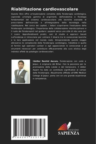 Questo libro offre un'esplorazione completa della fisioterapia cardiologica, coprendo un'ampia gamma di argomenti, dall'anatomia e fisiologia fondamentali del sistema cardiovascolare alle tecniche avanzate di prescrizione dell'esercizio e all'integrazione della tecnologia nella riabilitazione. Nel corso dei capitoli, i lettori scopriranno l'evoluzione della fisioterapia cardiologica, l'importanza della collaborazione interdisciplinare e il ruolo dei fisioterapisti nel guidare i pazienti verso uno stile di vita sano per il cuore. Approfondimenti pratici, casi di studio e approcci basati sull'evidenza si intrecciano per colmare il divario tra le conoscenze teoriche e la loro applicazione nel mondo reale. Intraprendendo questo viaggio attraverso le complessità della fisioterapia cardiologica, l'obiettivo è quello di fornire agli operatori sanitari e agli appassionati le conoscenze e gli strumenti necessari per contribuire efficacemente alla cura olistica degli individui affetti da patologie cardiovascolari.
