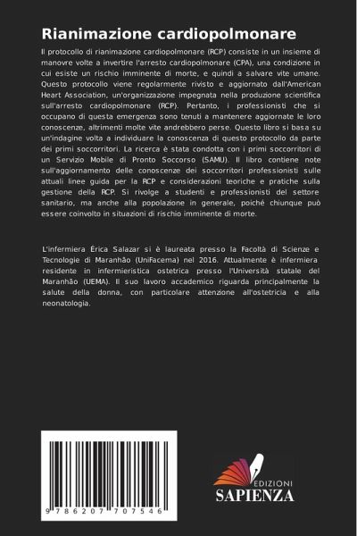 Il protocollo di rianimazione cardiopolmonare (RCP) consiste in un insieme di manovre volte a invertire l'arresto cardiopolmonare (CPA), una condizione in cui esiste un rischio imminente di morte, e quindi a salvare vite umane. Questo protocollo viene regolarmente rivisto e aggiornato dall'American Heart Association, un'organizzazione impegnata nella produzione scientifica sull'arresto cardiopolmonare (RCP). Pertanto, i professionisti che si occupano di questa emergenza sono tenuti a mantenere aggiornate le loro conoscenze, altrimenti molte vite andrebbero perse. Questo libro si basa su un'indagine volta a individuare la conoscenza di questo protocollo da parte dei primi soccorritori. La ricerca è stata condotta con i primi soccorritori di un Servizio Mobile di Pronto Soccorso (SAMU). Il libro contiene note sull'aggiornamento delle conoscenze dei soccorritori professionisti sulle attuali linee guida per la RCP e considerazioni teoriche e pratiche sulla gestione della RCP. Si rivolge a studenti e professionisti del settore sanitario, ma anche alla popolazione in generale, poiché chiunque può essere coinvolto in situazioni di rischio imminente di morte.