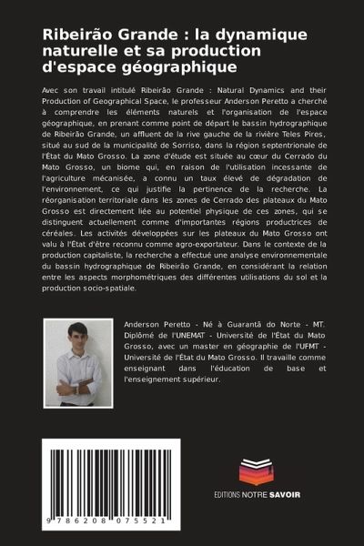 Avec son travail intitulé Ribeirão Grande : Natural Dynamics and their Production of Geographical Space, le professeur Anderson Peretto a cherché à comprendre les éléments naturels et l'organisation de l'espace géographique, en prenant comme point de départ le bassin hydrographique de Ribeirão Grande, un affluent de la rive gauche de la rivière Teles Pires, situé au sud de la municipalité de Sorriso, dans la région septentrionale de l'État du Mato Grosso. La zone d'étude est située au coeur du Cerrado du Mato Grosso, un biome qui, en raison de l'utilisation incessante de l'agriculture mécanisée, a connu un taux élevé de dégradation de l'environnement, ce qui justifie la pertinence de la recherche. La réorganisation territoriale dans les zones de Cerrado des plateaux du Mato Grosso est directement liée au potentiel physique de ces zones, qui se distinguent actuellement comme d'importantes régions productrices de céréales. Les activités développées sur les plateaux du Mato Grosso ont valu à l'État d'être reconnu comme agro-exportateur. Dans le contexte de la production capitaliste, la recherche a effectué une analyse environnementale du bassin hydrographique de Ribeirão Grande, en considérant la relation entre les aspects morphométriques des différentes utilisations du sol et la production socio-spatiale.