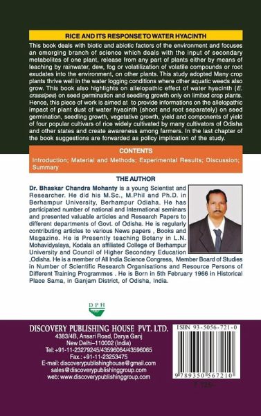 This book deals with biotic and abiotic factors of the environment and focuses an emerging branch of science which deals with the input of secondary metabolites of one plant, release from any part of plants either by means of leaching by rainwater, dew, fog or volatilization of volatile compounds or root exudates into the environment, on other plants. This study adopted Many crop plants thrive well in the water logging conditions where other aquatic weeds also grow. This book also highlights on allelopathic effect of water hyacinth (E. crassipes) on seed germination and seedling growth only on limited crop plants.