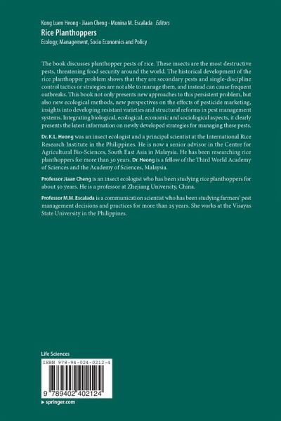 The book discusses planthopper pests of rice. These insects are one of the most destructive pests, threatening food security around the world. The historical development of the rice planthopper problem shows that they are secondary pests and single-discipline control tactics or strategies were not able to manage them, and instead caused frequent resurgences. This book not only presents new approaches to this persistent problem, but also new ecological methods, new perspectives on the effect of pesticide marketing, insights into developing resistant varieties and structural reforms in pest management. Integrating biological, ecological, economic and sociological aspects, it clearly presents the latest information on newly developed strategies for managing this pest.