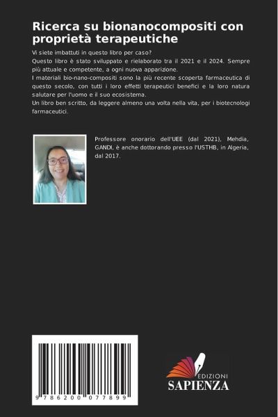 Vi siete imbattuti in questo libro per caso?Questo libro è stato sviluppato e rielaborato tra il 2021 e il 2024. Sempre più attuale e competente, a ogni nuova apparizione.I materiali bio-nano-compositi sono la più recente scoperta farmaceutica di questo secolo, con tutti i loro effetti terapeutici benefici e la loro natura salutare per l'uomo e il suo ecosistema.Un libro ben scritto, da leggere almeno una volta nella vita, per i biotecnologi farmaceutici.