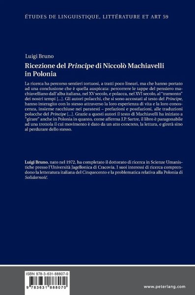 La ricerca ha percorso sentieri tortuosi, a tratti poco lineari, ma che hanno portato ad una conclusione che è quella auspicata: percorrere le tappe del pensiero machiavelliano dall¿alba italiana, nel XV secolo, e polacca, nel XVI secolo, al "tramonto" dei nostri tempi [...]. Gli autori polacchi, che si sono accostati al testo del Principe, hanno interagito con lo stesso attraverso la loro esperienza di vita e la loro conoscenza, insieme racchiuse nei paratesti ¿ prefazioni e postfazioni, alle traduzioni polacche del Principe [...]. Grazie a questi autori il testo di Machiavelli ha iniziato a "girare" anche in Polonia in quanto, come afferma J.P. Sartre, il libro è paragonabile ad una trottola il cui movimento è dato da un atto concreto, la lettura, e girerà sino al perdurare dello stesso.