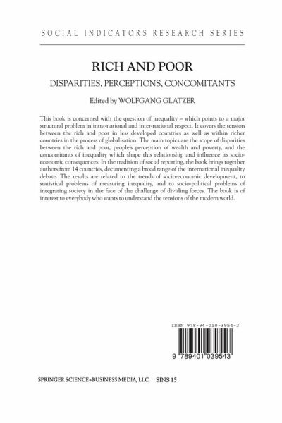 1. Rich and Poor as Dividing and Integrating Forces of Society - Introduction.- Disparities Between Rich and Poor.- 2. "Poverties" and Wealth: Competing Definitions and Alternative Approaches to Measurement.- 3. Inequalities between Income and Wealth: The Case of Germany in 1998.- 4. Assessing Trends in Poverty in Australia.- 5. Divergence and Convergence of International Development: A Socio-economic Approach.- 6. Determinants of Internet Use in Switzerland: Structural Disparities and New Technologies.- Subjective Perceptions of Poverty and Wealth.- 7. Income and Satisfaction in Germany and Russia: A Comparison between Poor and Rich People.- 8. Closing the Gap between Rich and Poor in South Africa: Trends in Objective and Subjective Indicators of Quality of Life in the October Household Survey.- 9. Subjective Poverty and Affluence in the Philippines.- 10. Subjective Well-being from Rich and Poor.- 11. The Income - Happiness Relationship.- Concomitant Circumstances of Socio-Economic Inequality.- 12. Intercontinental Disparities and Migration.- 13. Global Response to Poverty Alleviation: Challenges for Development NGOs in South Asia.- 14. Economic Growth and Social Polarisation under Globalisation: Some Evidence from Sri Lanka.- 15. Welfare Burden and the Disapproval of Redistribution: Two Sides of the Same Coin?.- 16. Welfare Production, Poverty and Wealth: A Comparative and Longitudinal Perspective.- Contributors.