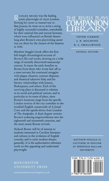 Offers a groudbreaking and authoritative account of the life and works of Richard Brome, the leading comic playwright of 1630s London - reconstructs the chronology of his career from manservant to successful professional dramatist and beyond, and discusses all his comedies, including the two best-known plays, 'A Jovial Crew' and 'The Antipodes'.