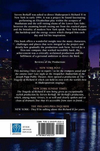 Steven Berkoff was asked to direct Shakespeare's Richard II in New York early 1994. It was a project he found fascinating: performing an Elizabethan play within the scrapers of Manhattan and the still rotting slums of the Lower East Side, between the steaming breath oozing out from the cracked pipes and the brutality of modern New York speak. New York became the backdrop and the energy centre which charged him each day and fed his inspiration. This book offers a wonderful insight into the many characters, challenges and places that were integral to the project and details how gradually the production took form. Served by a first-rate company that worked incredibly hard, the achievement was a critically acclaimed production and the fulfilment of a personal goal to direct the Bard. NEW YORK POST This morning I have joy to report - so let the trumpets sound and the canons roar! Last night at the Anspacher Auditorium of the Joseph Papp Public Theater, there opened a production of The Tragedy of Richard II which can hold its own with the world's best in Shakespearean stagings. NEW YORK SUNDAY TIMES The Tragedy of Richard II now being given an exceptionally stylish production by Steven Berkoff. Mr Berkoff's production, which, among many virtues, is so well and clearly spoken and so clean of dramatic line that it's accessible from start to finish... THE PHILADELPHIA INQUIRER NEW YORK - They'll be talking about this Richard II for years.