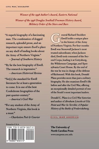 General Richard Stoddert Ewell holds a unique place in the history of the Army of Northern Virginia. For four months Ewell was Stonewall Jackson’s most trusted subordinate; when Jackson died, Ewell took command of the Second Corps, leading it at Gettysburg, the Wilderness, and Spotsylvania Court House. In this biography, Donald Pfanz presents the most detailed portrait yet of the man sometimes referred to as Stonewall Jackson’s right arm. Drawing on a rich array of previously untapped original source materials, Pfanz concludes that Ewell was a highly competent general, whose successes on the battlefield far outweighed his failures. But Pfanz’s book is more than a military biography. It also examines Ewell’s life before and after the Civil War, including his years at West Point, his service in the Mexican War, his experiences as a dragoon officer in Arizona and New Mexico, and his postwar career as a planter in Mississippi and Tennessee. In all, Pfanz offers an exceptionally detailed portrait of one of the South’s most important leaders.