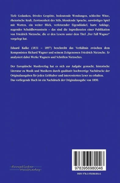 Eduard Kulke (1831 1897) beschreibt das Verhältnis zwischen dem Komponisten Richard Wagner und seinem Zeitgenossen Friedrich Nietzsche. Er analysiert dabei Werke Wagners und Schriften Nietzsches.