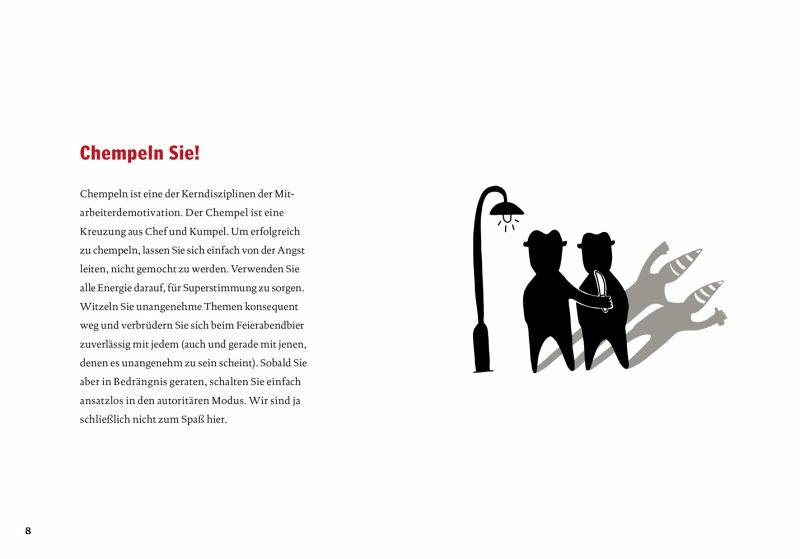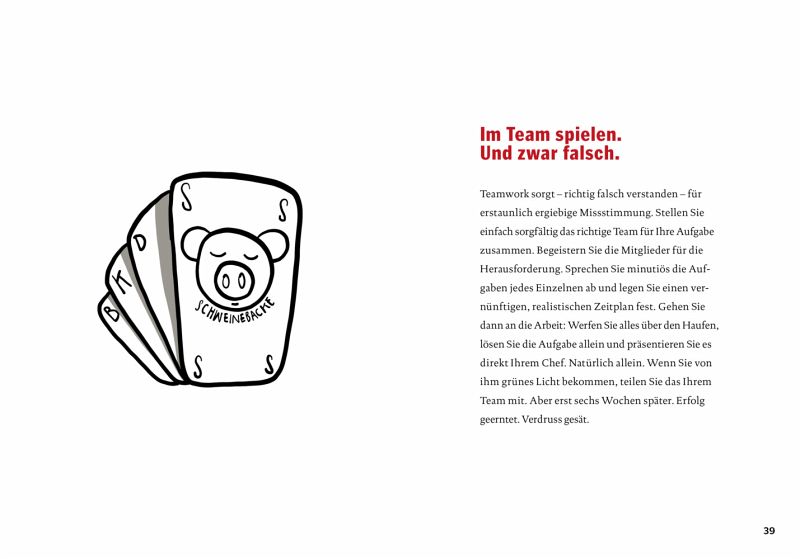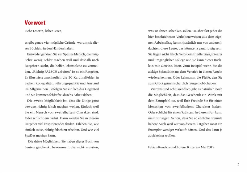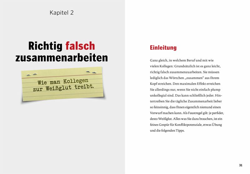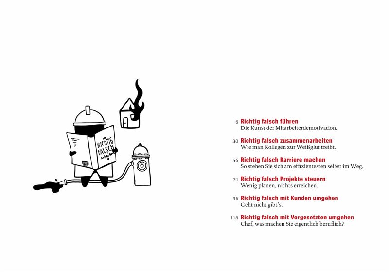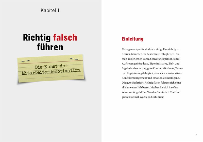 Ein vergnüglicher und dabei verblüffend lehrreicher Ratgeber über die Dinge, die Sie im Arbeitsalltag so richtig falsch machen können Ratgeber verraten, wie man Dinge richtig macht. Nun ist der Mensch aber ein lernendes Wesen, was leider heißt, dass er aus Fehlern lernt und nicht aus Ratgebern. "Richtig FALSCH arbeiten" ist die Ausnahme: Hier finden Sie die ultimative Hitliste der Katastrophen im Umgang mit Kollegen, Vorgesetzten und Angestellten, sodass Sie aus dem Stand alles richtig machen können, ohne die Lernkurve als mieser Kollege oder als unfähige Führungskraft nehmen zu müssen. Es sei denn, sie möchten das. Auch dann ist "Richtig FALSCH arbeiten" eine durchaus gewinnbringende, mit spitzer Feder illustrierte Lektüre. Mit einem ganz erstaunlichen Effekt: In dieser Weise pointiert und überspitzt dargestellte Verhaltensmuster helfen viel eher als der erhobene Zeigefinger dabei, für sich selbst einen Gewinn aus diesem Buch für den erfüllten Arbeitsalltag und den persönlichen Erfolg zu ziehen.