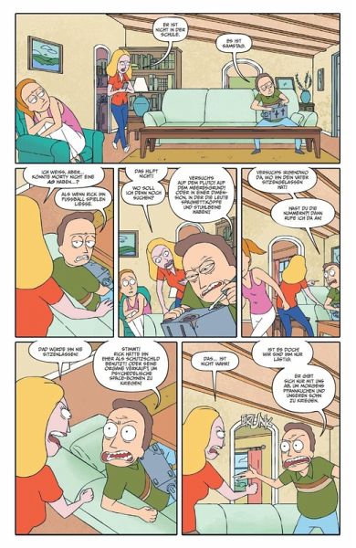 NUR NICHT DEN KOPF VERLIEREN!!Ihre Trips durch Raum und Realität bringen den brillant-kaputten Wissenschaftler Rick und seinen trottelig-netten Enkel Morty an die abgefahrensten Orte - und in die größten Schlamassel. Unterwegs besteht dabei immer die Gefahr, dass die beiden ungleichen Abenteurer und Antihelden im Unbekannten oder Unvorstellbaren irgendwann einmal den Kopf verlieren und den Rest ihrer traumatisierten Familie voller Trauer zurücklassen. Immerhin kommt der Wahnsinn, der ihnen begegnet, in Form von Alien-Invasionen, virtuellen Highschool-Simulationen, gruseligen Körpertausch-Szenarien und blutigen außerirdischen Kampfsport-Events daher...Richtig rasant, wohlig wahnsinnig und super satirisch: Neue Comic-Abenteuer zu Rick and Morty, der genialsten Science-Fiction-Serie im gesamten Multiversum, inszeniert von Tom Fowler, Pamela Ribon, CJ Cannon, Marc Ellerby und anderen.
