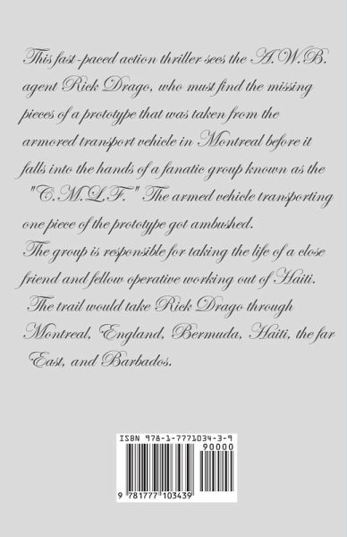 This fast-paced action thriller sees the A.W.B. agent Rick Drago, who must find the missing pieces of a prototype that was taken from the armored transport vehicle in Montreal before it falls into the hands of a fanatic group known as the "C.M.L.F." The armed vehicle transporting one piece of the prototype got ambushed. Security guards working at the plant in Montreal also fell victim to the "C.M.L.F." henchmen. The group is responsible for taking the life of a close friend and fellow operative working out of Haiti. The trail would take Rick Drago through Montreal, England, Bermuda, Haiti, the far East, and Barbados.