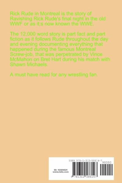 Rick Rude in Montreal is the story of Ravishing Rick Rude's final night in the old WWF or as it;s now known the WWE. The 12,000 word story is part fact and part fiction as it follows Rude throughout the day and evening documenting everything that happened during the famous Montreal Screw-job, that was perpetrated by Vince McMahon on Bret Hart during his match with Shawn Michaels. A must have read for any wrestling fan.