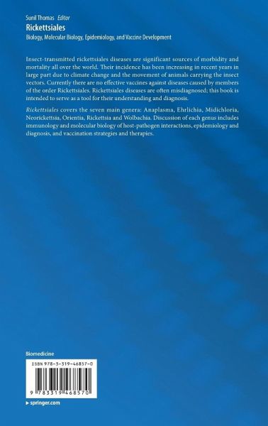 Insect-transmitted rickettsiales diseases are significant sources of morbidity and mortality all over the world. Their incidence has been increasing in recent years in large part due to climate change and the movement of animals carrying the insect vectors. Currently there are no effective vaccines against diseases caused by members of the order Rickettsiales. Rickettsiales diseases are often misdiagnosed; this book is intended to serve as a tool for their understanding and diagnosis.