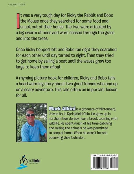 It was very tough day for Ricky the Rabbit and Bobo the Mouse once they searched for some food and snuck out of their house. The two were attacked by a big swarm of bees and were chased through the grass and into the trees. Once Ricky hopped left and Bobo ran right, they searched for each other until day turned to night. Then they tried to get home by sailing a boat until the waves grew too large to keep them afloat. A rhyming picture book for children, Ricky and Bobo tells a heartwarming story about two good friends who end up on a scary adventure. This tale offers an important lesson for all.