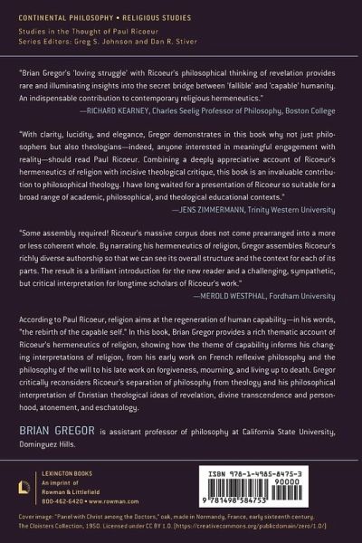 Religion was a constant theme throughout Paul Ricoeur's long career, and yet he never wrote a full-length treatment of the topic. In this important new book, Brian Gregor draws on the full scope of Ricoeur's writings to lay out the essential features of his philosophical interpretation of religion, from his earliest to his last work. Ricoeur's central claim is that religion aims at the regeneration of human capability-in his words, "the rebirth of the capable self." This book provides a rich thematic account of Ricoeur's hermeneutics of religion, showing how the theme of capability informs his changing interpretations of religion, from his early work on French reflexive philosophy and the philosophy of the will to his late work on forgiveness, mourning, and living up to death. Gregor exhibits Ricoeur's original contribution to philosophical reflection on such themes as evil, suffering, and violence, as well as imagination, embodiment, and spiritual exercise. He also presents a critical reconsideration of Ricoeur's separation of philosophy from theology, and his philosophical interpretation of Christian theological ideas of revelation, divine transcendence and personhood, atonement, and eschatology. Additionally, Gregor provides an expansive look at Ricoeur's interlocutors, including Marcel, Jaspers, Kant, Hegel, Levinas, and Girard. Theologically-inclined readers will be particularly interested in the book's treatment of Karl Barth and the Protestant theology of the Word, which was a vital influence on Ricoeur. The result is a study of Ricoeur that is both sympathetic and critical, provocative and original, inviting the reader into a deeper engagement with Ricoeur's philosophical interpretation of religion.