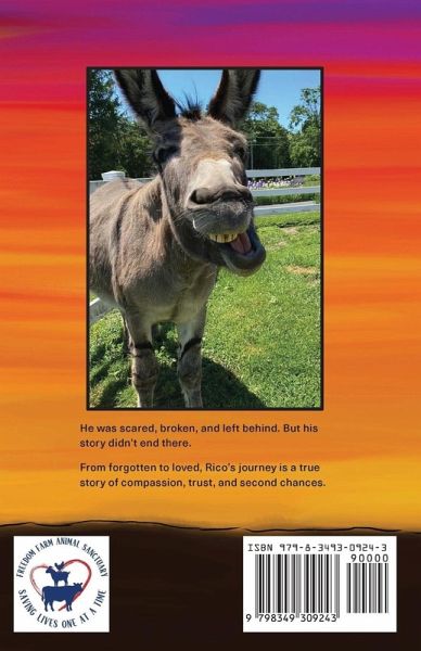 Rico's Road Home is a powerful children's book inspired by the true rescue of a donkey who was once forgotten-but never gave up. Rico was discovered in a holding pen, awaiting transport to Mexico where he would have been slaughtered for his hide. At just six years old, he was severely neglected-dehydrated, blind in one eye due to trauma, riddled with parasites, and suffering from painfully overgrown hooves. But someone, over a thousand miles away, saw his photo and couldn't look away. That single act of compassion changed everything. This beautifully illustrated book follows Rico's emotional journey from fear and mistrust to safety and hope. Coordinated by a rescuer who arranged everything from afar, Rico was pulled from the pen and transported halfway across the country to Freedom Farm Animal Sanctuary. On the long journey, he formed a gentle bond with a palomino horse traveling beside him. When he finally arrived, scared and unsure, he was met not with force-but with love, patience, and healing. Little by little, Rico learned what it meant to feel safe. To take a carrot from a kind hand. To feel the bristles of a brush. To rest without fear. To trust. And then came a surprise: Rico wasn't just a donkey. His striped legs and ears revealed that he was a rare zonkey-part zebra, part donkey. Unique in more ways than one, Rico's story is not only about rescue, but about identity, transformation, and the quiet power of being chosen. This book is written for children ages 8-12 and is ideal for classrooms, sanctuary programs, and families who value empathy, animal welfare, and environmental awareness. It touches on real-world issues with age-appropriate sensitivity and uplifting hope. All proceeds support the mission of Freedom Farm Animal Sanctuary, a nonprofit dedicated to rescuing and rehabilitating abused, neglected, and abandoned farm animals. A heartwarming, true tale of second chances, Rico's Story reminds us that every life-no matter how broken-is worth saving.