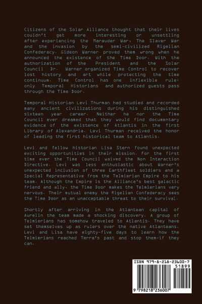 Dr. Gideon Warner had spent most of his career trying to find or create a doorway to the past.His theories and speculations on time travel consigned him to Outer Darkness in the scientific community. He began to despair of seeing his dream of a portal to the past ever coming true. A chance discovery of a temporal rift on Terra suddenly put the achievement of that dream within his reach. With the help of a mainstream scientist working for Earthfleet he convinced the president and Solar Council to fund the project he named Project Timestream. To avoid opposition and hysteria only five people know the real purpose and goal of the project. The project has only one military person: Bryan Casey, Chief Engineer of the star cruiser Atlantis. Like everyone else on the project Bryan is sworn to secrecy. The Speaker of the Solar Council brought ill news when he visited to check on the project's progress with politicians of both parties pressing him and the president to brief them about the project's purpose. All the while, they have been threatening to go public with their complaints if they are not added to the "need-to-know" list. Despite having a team of stellar scientists, engineers and techs, the project gets off to a rough start. With the help of Assistant Project Director Amara Taft, the project gets fully on track. Just when it seemed that everything couldn't be going better Warner learns of a serious threat. Someone from the team has rigged a fusion reactor to become a fusion bomb. Time is ticking.