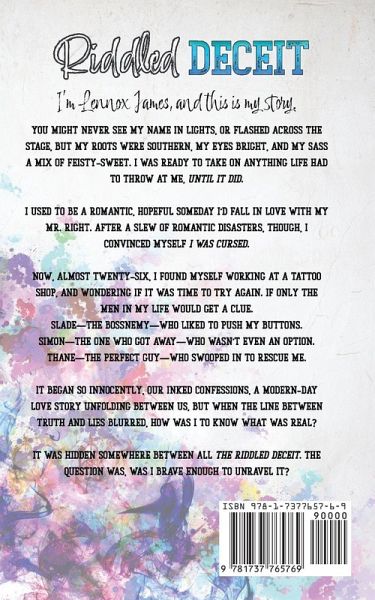 Do you dare? You might never see my name in lights or flashed across the stage, but my roots were southern, my eyes bright, and my sass a mix of feisty-sweet. I was ready to take on anything life had to throw at me... until it did. I used to be a romantic, hopeful someday I'd fall in love with Mr. Right. After a slew of dating disasters, though, I'd convinced myself I was cursed. Now, almost twenty-six, I found myself working at a tattoo shop, wondering if it was time to try again. If only the men in my life would get a clue. Slade-the bossnemy-who liked to push my buttons. Simon-the one who got away-who wasn't even an option. Thane-the perfect guy-who swooped in to rescue me. It began so innocently, our inked confessions, a modern-day love story unfolding between us, but when the line between truth and lies blurred, how was I to know what was real? It was hidden somewhere between all the riddled deceit. The question was, was I even brave enough to unravel it? I'm Lennox James, and this is my story. *This is a why choose novel, meaning the main female character doesn't have to choose between love interests. This is a contemporary romantic suspense novel with some dark elements. This is an adult romance and intended for readers 18+ due to language and content. This series will contain MM.