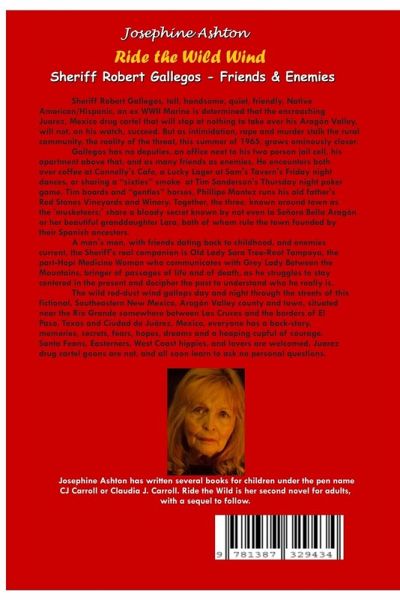Sheriff Robert Gallegos, tall, handsome, quiet, friendly, Native American/Hispanic, an ex WWII Marine is determined that the encroaching Juarez, Mexico drug cartel that will stop at nothing to take over his Southwestern New Mexico, Aragón Valley - will not, on his watch, succeed. But as intimidation, rape and murder stalk the rural community, the reality of the threat, this summer of 1965, grows ominously closer. Gallegos has no deputies, an office next to his two person jail cell, his apartment above that, and as many friends as enemies. He encounters both over coffee at Connelly's Cafe, a Lucky Lager at Sam's Tavern's Friday night dances, or sharing a "sixties" smoke at Tim Sanderson's Thursday night poker game. Tim boards and "gentles" horses, Phillipe Montez runs his old father's Red Stones Vineyards and Winery. Together, the three, known around town as the 'musketeers;' share a bloody secret known by not even la Senora Bella Aragón or her beautiful granddaughter Lara, both of whom rule the town founded by their Spanish ancestors. A man's man, the Sheriff's real companion is Old Lady Sara Tree-Root Tampoya, the part-Hopi Medicine Woman who communicates with Grey Lady Between the Mountains, bringer of passages of life and of death, as he struggles to stay centered in the present and decipher the past, to understand who he really is. The wild red-dust wind gallops day and night through the streets of this fictional, S.E New Mexico Aragón Valley county and town. Situated near the Rio Grande, somewhere between Las Cruces and the borders of El Paso, Texas and Ciudad de Juárez, Mexico, everyone has a back-story, memories and secrets. Santa Feans, Easterners, Denver and West Coast hippies, and lovers are welcomed, Juarez drug cartel goons are not, and all soon learn to ask no personal questions. A "Cast of Characters", research information, and Spanish language words and conversations translations are provided following the story.