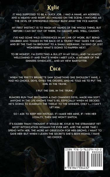 A woman with a secret. A man trying to avoid his past. A case of mistaken identity that changes everything. In this explosive finale, the city of Springfield will never be the same... Kylie It was supposed to be a quick job. I had a name, an address, and a means-and right as I walked on the scene, I watched as the Devil of Springfield himself blew away the vice mayor. My first instinct is to wash my hands of the whole thing, but before I can get out of there, I'm caught and, well, caught. I've had some wild experiences in my line of work, but being grabbed and tossed in the back of a trunk? That takes the cake, and by the time I'm brought to a small hideaway, I'm kind of just wondering what's going to happen next. To be honest, I'm expecting a bullet in my skull, and I'm almost welcoming it-and that's when I meet Luca, a member of the Sinners Syndicate... and my new babysitter. He tells me this is just to keep me safe. That his boss wants me dead, and even if he didn't, there's a new threat in the city: a faceless assassin who goes by the Hummingbird. So long as I do what I'm told and stay where he put me, I might actually make it out of this alive. And for the first time in years, I'm digging that idea. Only Luca... he doesn't know what to make of me. He expected tears; I give him a flirty smile. He expected me to beg; I ask him if he wants to play checkers. I'm having the time of my life, and the sparks flying between us have me close to igniting. And then he discovers that I am the Hummingbird-and, whoops, things aren't as much fun anymore... Luca When the pretty brunette saw something she shouldn't have, I had no choice. Devil gives the orders, and he told me to put the girl in the trunk. I put the girl in the trunk. Rumors run that becoming a dad changed Devil. Made him soft. Anyone in the life knows that's BS, especially when he decides he's going to eliminate the threat to the Sinners. Only I... I can't let him. So I ask to keep her instead. If I make her mine, if I win her loyalty, then she won't snitch. It's easier than I thought it would be. Kylie is the strangest yet most intoxicating woman I've ever met, and the more time I spend with her, the more my obsession for her grows. I want to save her-but when I learn the secrets she's been hiding, I have no choice. The Hummingbird is supposedly a threat to Springfield. But if anything happens to Kylie... I might just lose my cool. And ask anyone in Hamilton: bad things happen when Luca St. James loses his cool.