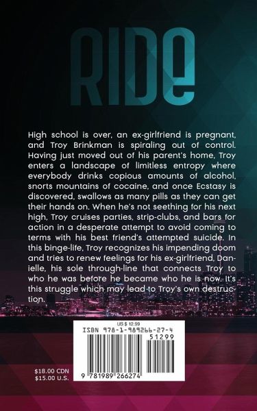 Ride possesses an unnerving air of autofiction that's heartbreaking and authentic at the same time. This searing novel is a dizzying spiral of desperation set in the early 2000s in southern Ontario. High school is over, an ex-girlfriend is pregnant, and Troy Brinkman is losing control. Having just moved out of his parent's home, Troy enters a landscape of limitless moral entropy where everybody drinks copious amounts of alcohol, snorts mountains of cocaine, and swallows as many Ecstasy pills as they can get their hands on. When he's not seething for his next high, Troy cruises parties, strip-clubs, and bars for action in a desperate attempt to avoid coming to terms with his best friend's attempted suicide. In this binge-life, Troy recognizes his impending doom and tries to renew feelings for his ex-girlfriend, Danielle, his sole through-line that connects Troy to who he was before his habits became him. It's this struggle which threatens to get the better of, consume, and ultimately destroy his dreams. A bold exploration of the blurred line between nihilism and loneliness, pleasure and addiction, Ride offers a exhilarating, devastating portrait of a young man's pursuit of his own kind of freedom. It is a striking deluge of longing, anxiety, ego, identity, and love. As provocative as it is moving, as profane as it is artful, Andrew Lafleche's Ride illuminates the warring forces of power, desire, intimacy, and fear, and exposes the raw nerve of our yearning to be loved on our own terms. This is coming of age at the end of the world.
