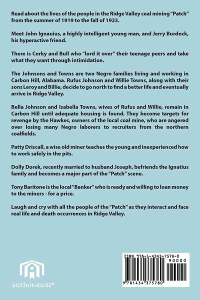 Ridge Valley is the story of a mining town, located in the vast Connellsville Coke region in Southwestern Pennsylvania. Founded in the early 1900's the Ridge Valley mine was worked by hundreds of European immigrants to extract its treasure. Growing up in the "Patch" in the late teens and early 1920's are teenagers John, Jerry, Bull and Corky who soon face a calamity at the mine that immediately propels them into adulthood. In Carbon Hill, Alabama, Leroy Johnson, a Negro teen will accompany his father north. Willie and his son join them along with many other recruits from the south to work in the northern coalfields. Leroy will become friends with John and because of his father's illness faces the reality of becoming the head of his family. The workers, in order to gain a fair wage; recognition of a union and a "checkweigh" man to work with the company weighmaster, face the dictatorial control of the Coal Barons, The miners go on strike and face the industrialists who use their power to hire their own Coal and Iron Police to help destroy any union organizational plans. John will be directly involved with the clash of wills between the two groups. Read about Patty the old miner, Bella the matriarch of the Johnson family, Willie, Dolly, Tony, Rufus and the people living, surviving, and dying in the coal mining 'Patch" of RidgeValley.