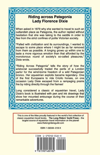 When asked in 1879 why she wanted to travel to such an outlandish place as Patagonia, the author replied without hesitation that she was taking to the saddle in order to flee from the strict confines of polite Victorian society. ¿Palled with civilization and its surroundings, I wanted to escape to some place where I might be as far removed from them as possible. A longing grows up within one to taste a more vigorous emotion than that afforded by the monotonous round of society¿s so-called pleasures,¿ Dixie wrote. ¿Riding Across Patagoniä tells the story of how the aristocrat successfully traded the perils of a London parlor for the wind-borne freedom of a wild Patagonian bronco. Her equestrian exploits became legendary. One of the first Europeans to ride Criollo horses, on one occasion Lady Dixie escaped from a rampaging prairie fire by riding directly through the flames! Long considered a classic of equestrian travel, Lady Dixie¿s book is illustrated with pen and ink drawings that show her mounted entourage during the course of their remarkable adventures.