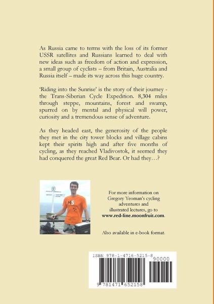 Spring 1993. 14 months earlier the USSR had collapsed and with Russia accessible once more Gregory Yeoman and his expedition companions set off on their bicycles to ride from the Baltic to the Pacific. Over 153 days they encountered wild landscapes, wild people, crumbling hotels and Siberia's two cheeses on an extraordinary adventure through a nation finding itself after 70 years of Communism. 'Riding into the Sunrise' is the story of their journey, the Trans-Siberian Cycle Expedition. 8304 miles through steppe, mountains, forest and swamp, spurred on by mental and physical will power, curiosity and a tremendous sense of adventure. As they headed east, the generosity of the people they met in the city tower blocks and village cabins kept their spirits high and after five months of cycling, as they reached Vladivostok, it seemed they had conquered the great Red Bear. Or had they...? 59 black and white photographs and 8 maps help bring the story to life.