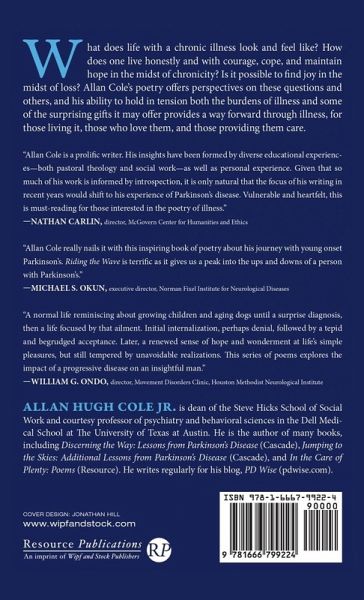 What does life with a chronic illness look and feel like? How does one live honestly and with courage, cope, and maintain hope in the midst of chronicity? Is it possible to find joy in the midst of loss? Allan Cole's poetry offers perspectives on these questions and others, and his ability to hold in tension both the burdens of illness and some of the surprising gifts it may offer provides a way forward through illness, for those living it, those who love them, and those providing them care.