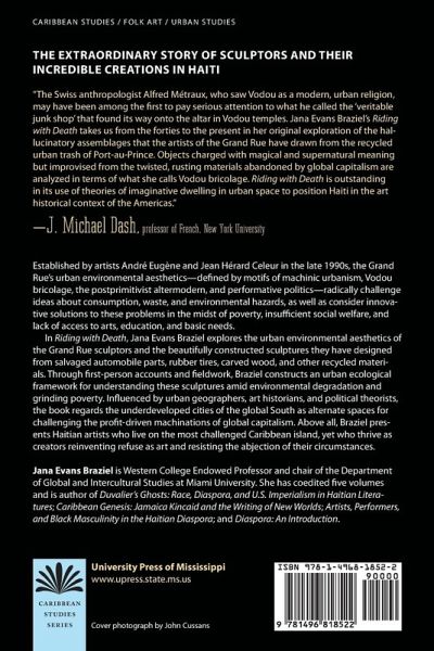 Explores the urban environmental aesthetics of the Grand Rue sculptors and the beautifully constructed sculptures they have designed from salvaged automobile parts, rubber tires, carved wood, and other recycled materials. Through first-person accounts and fieldwork, Braziel constructs an urban ecological framework for understanding these sculptures amid environmental degradation and poverty.